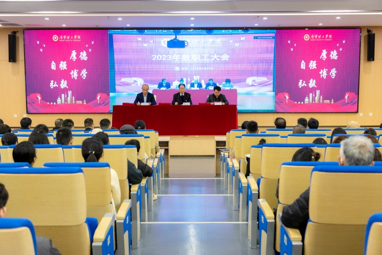 王金叶校长做2022年工作总结及2023年工作部署。王校长从党的建设、教育教学、校园治理建设等3个方面回顾了2022年的工作。从加强学校党建和思想政治工作,强化学校的思政育人功能;深化学校教育教学改革,稳步提高人才培养质量;推进学校治理体系和治理能力现代化建设,提高保障能力和支撑水平等三个方面,部署了2023年的工作。新的一年机遇与挑战并存,王校长希望全体教职工勇敢面对挑战,准确把握机遇,在党的二十大报告精神和习近平新时代中国特色社会主义思想的指引下,在学校党委、行政的领导下,全体南理人勠力同心、踔厉奋发,切实把各项计划任务落地、落实,为推动学校跨越式发展而努力奋斗。