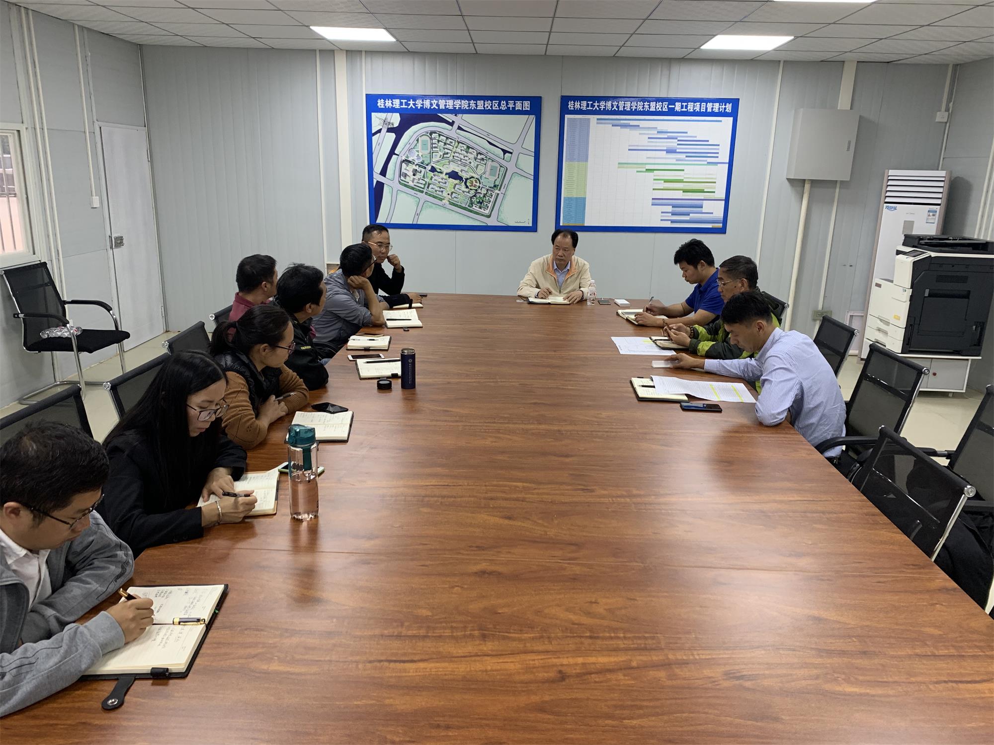 现场检查工作后,在指挥部会议室召开会议。会议由学校副校长王加青主持,南宁校区指挥部全体员工参与会议。