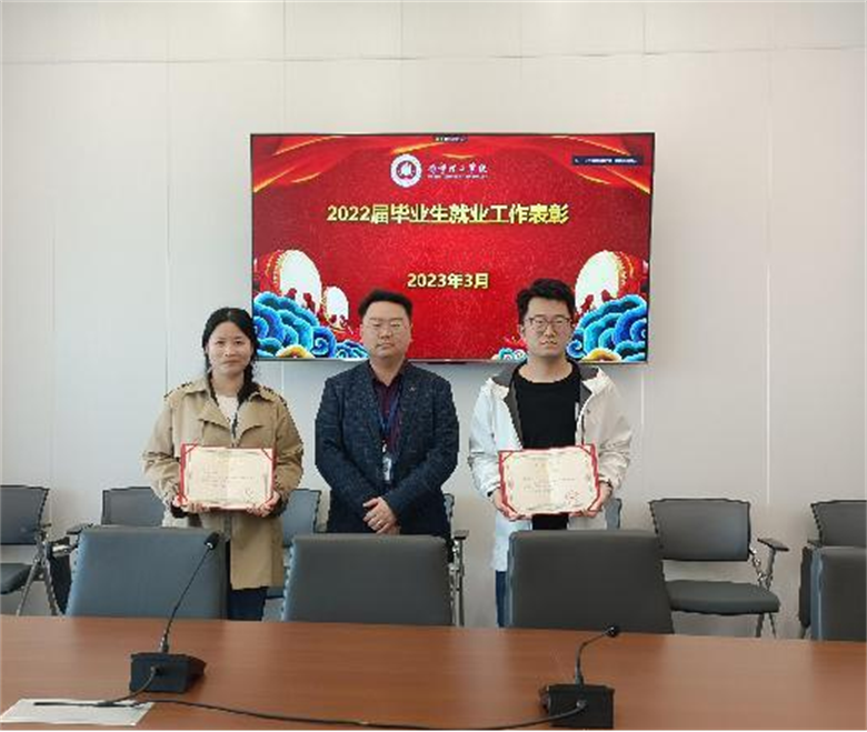 校长王金叶、党委书记金飞为2022年度就业先进个人颁奖