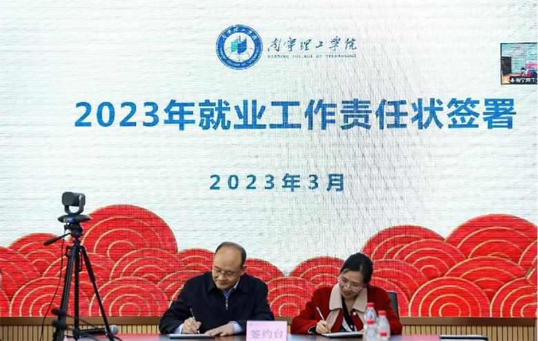 学校领导与招生就业处、各二级学院负责人签订了2023年就业工作责任状。