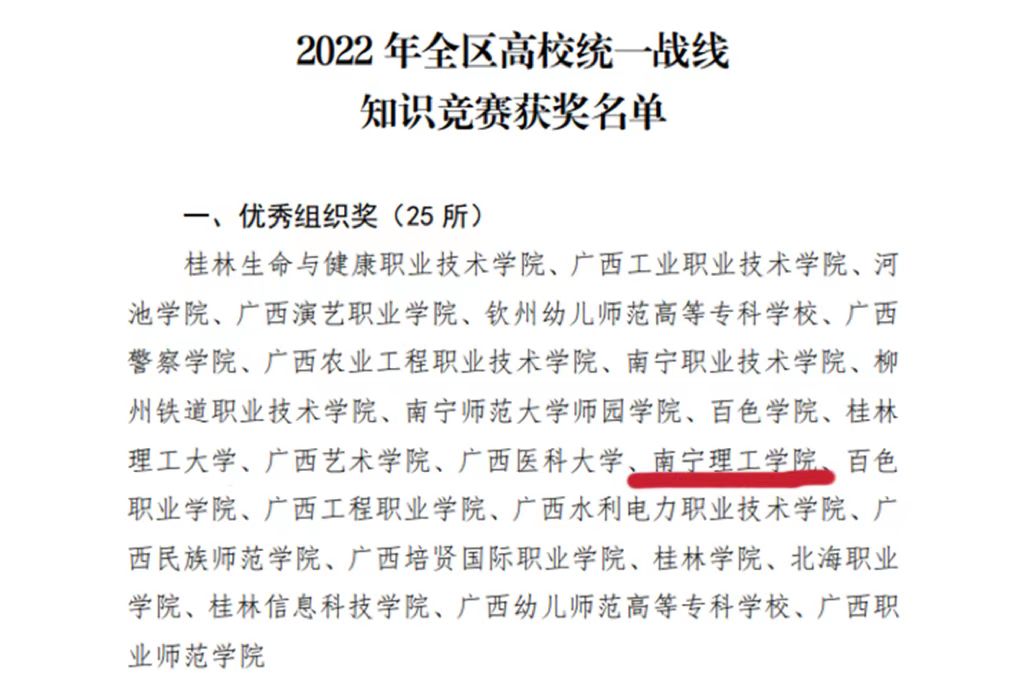 近日,由自治区党委教育工委主办的“喜迎二十大 奋进新征程”2022年全区高校统一战线知识竞赛公布结果,我校荣获“优秀组织奖”。