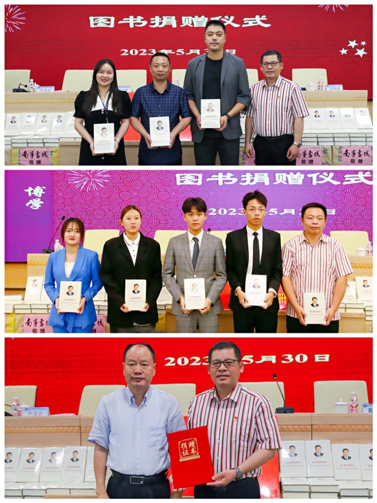2023年5月30日,南宁书城向南宁理工学院捐赠《习近平谈治国理政》(英文版)第三卷、第四卷共计800册。图书捐赠仪式在南宁理工学院南宁东盟校区图书馆报告厅举行,学校董事长尹少华、国际教育学院院长孙宝会、图文信息中心主任/大数据与人工智能学院院长周敏、马克思主义学院南宁东盟校区负责人王明成及各二级学院师生代表,南宁书城副总经理雷永远、总经理助理办公室主任戴子棋及工作人员代表参加了此次捐赠仪式。