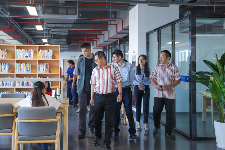 捐赠仪式结束,周敏主任带队邀请南宁书城一行参观我校图书馆。