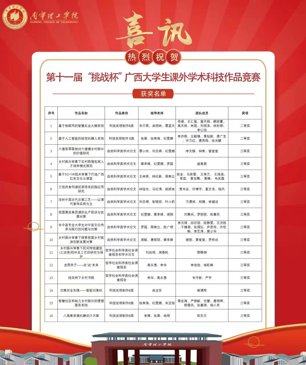 喜讯|南宁理工学院学子在第十一届“挑战杯”广西大学生课外学术科技作品竞赛中取得佳绩