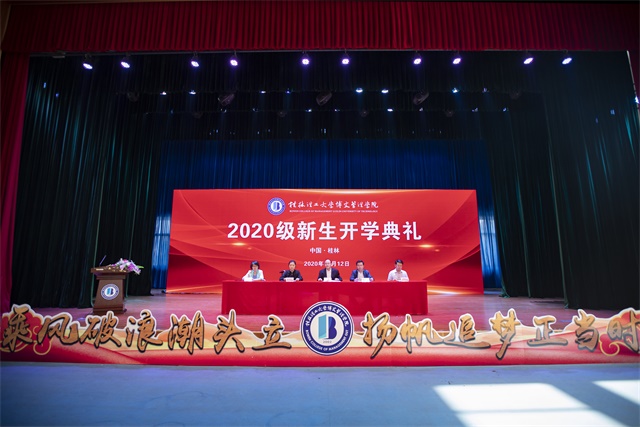开学典礼在庄严的国歌中拉开帷幕。信息工程学院负责人代表全体教师欢迎新生到来。他希望同学们在大学生活中认真践行社会主义核心价值观,逆风前行,乘风破浪,砥砺跃进。