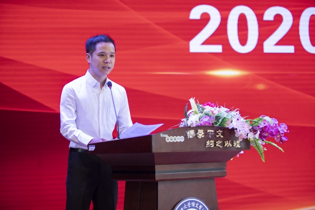 信息工程学院2020级本科新生代表马建同学作了发言,他表示,要尽快适应大学生活,认真学习,严于律己,积极上进;踏实走好每一步,拥有一个充实的大学生活。