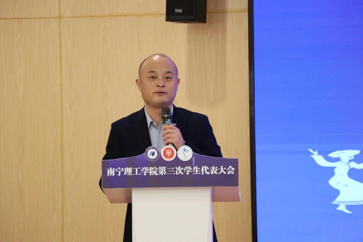 11月18-19日,南宁理工学院第三次学生代表大会在南宁东盟校区图书馆一楼报告厅顺利召开。党委副书记、校长助理马纪涛、团委书记钟俊光、土木与工程学院分团委书记徐远菁、文理学院党总支书记助理覃学鹏、艺术与传媒学院分团委书记罗文俊、信息工程学院分团委书记王辉、大数据与人工智能学院分团委书记李江燕、商学院分团委副书记杨笑宇、文理学院分团委书记覃蓝天、团委老师纪雯娜、团委老师覃渊、团委老师祁琳、团委老师马宇及260余名学生代表、列席代表参加本次大会。