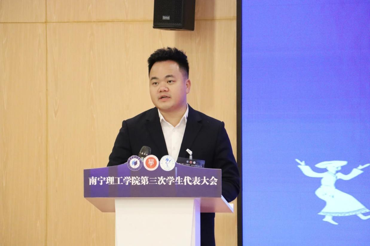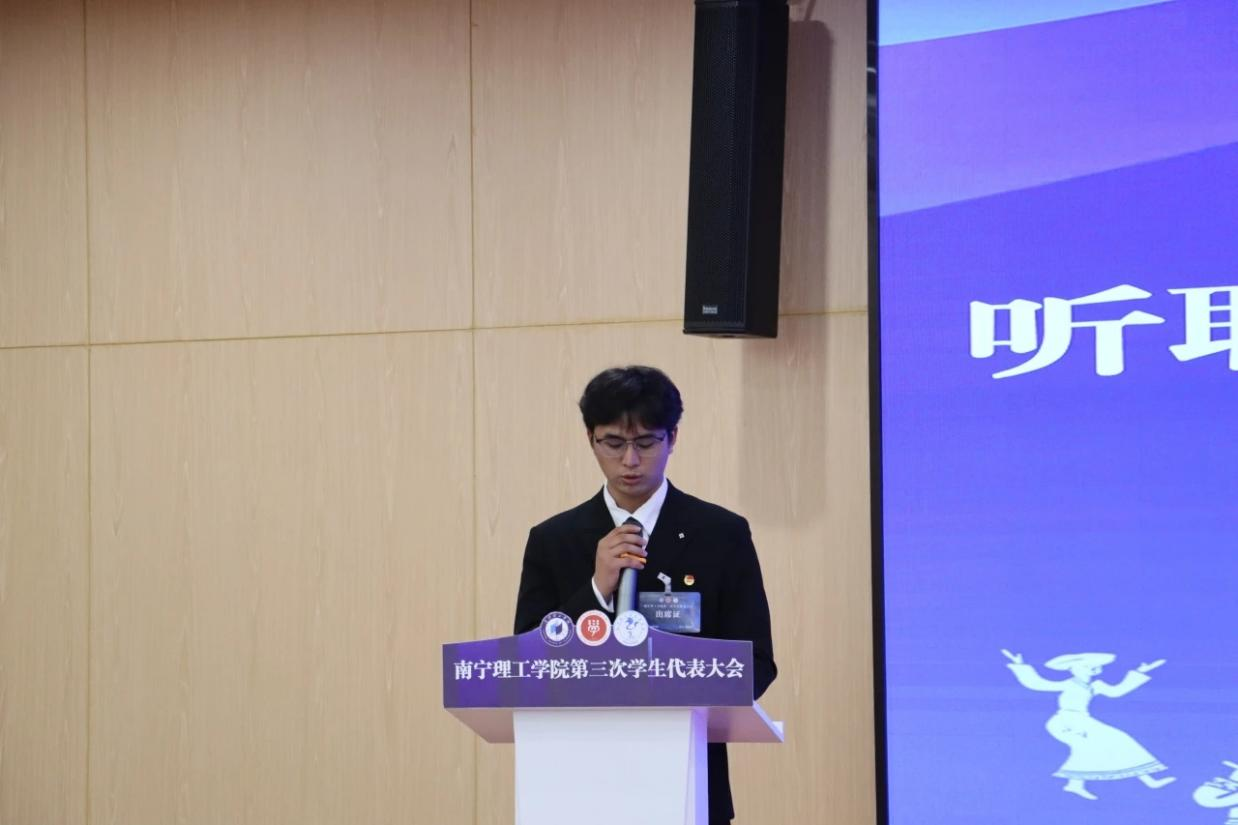 王沛锦同学宣读南宁理工学院第三次学生代表大会倡议书