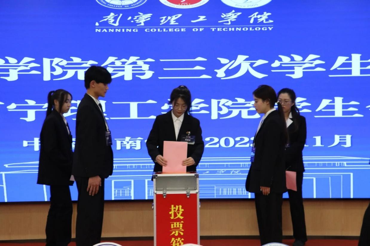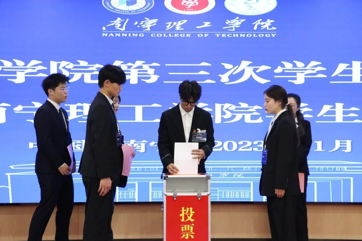 大会在庄严的《义勇军进行曲》中拉开序幕。大会听取并审议了《南宁理工学院第二届学生会工作报告》,审议通过了《南宁理工学院第三次学生代表大会关于提案工作的报告》,全体代表以无记名投票、差额选举的方式,选举产生了南宁理工学院第三届学生会主席团成员5名,南宁理工学院第三次学生代表大会常任代表6名。