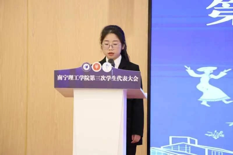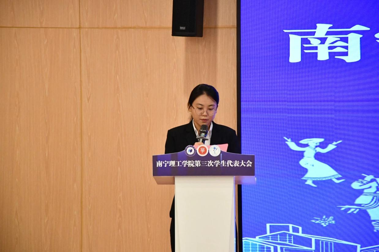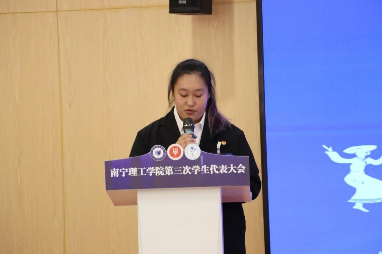 周纬吻同学宣读《南宁理工学院第三次学生代表大会关于提案工作的报告(草案)》