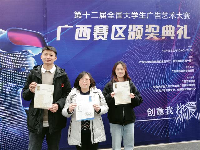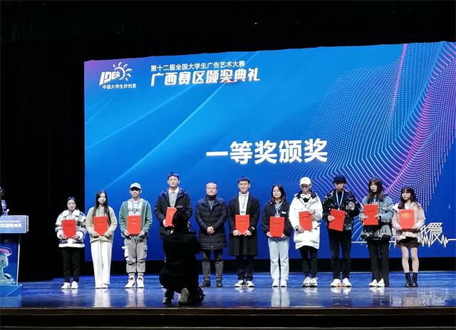 12月15日上午,由中国高等教育学会广告教育委员会、广西壮族自治区教育厅、全国大学生广告艺术大赛广西赛区组委会主办的第十二届全国大学生广告艺术大赛(以下简称“大广赛”)广西赛区颁奖典礼在广西艺术学院南湖校区会演中心举行。