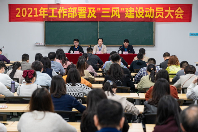 事业发展催征急,策马扬鞭再奋蹄。今年是中国共产党成立100周年,是全面开启“十四五”规划的第一年,学校的发展也站在一个全新的起点。我们要以“三风”建设为契机,平稳有序抓好各项工作,确保年度目标任务圆满完成,推动学校在新的征程上阔步前进,以优异的成绩向建党100周年献礼。