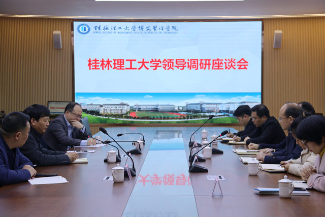 3月22日下午,桂林理工大学校长解庆林、总会计师曾繁荣与相关负责人到我校调研指导并开展座谈。学校领导尹少华、王金叶、金飞、邓雪梅、冯正垚、杨鲜丽参加座谈。