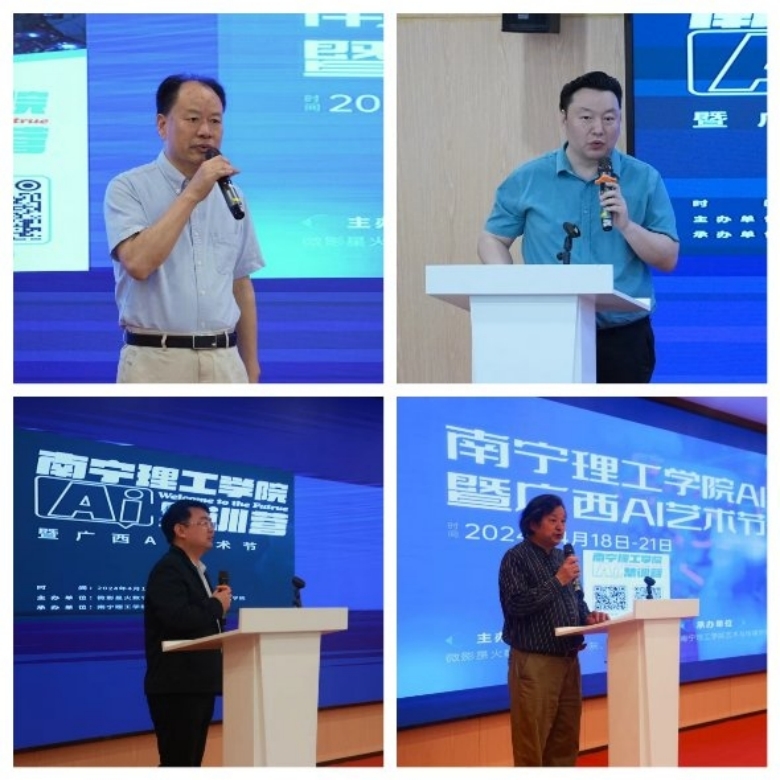4月18日,南宁理工学院首届AI集训营暨广西AI艺术节正式启动。本次活动由南宁理工学院艺术与传媒学院、微影星火数字传媒产业学院联合主办,特邀著名艺术家、策展人及文化创意产业研究者岳路平,资深动漫策划人候涛先生担任导师,为南理学子进行为期4天的AI学习指导,旨在探索艺术与AIGC结合的新模式,激发学生的创新思维和跨学科合作能力。学校领导、到场嘉宾及在校师生200余人参与了本次活动。