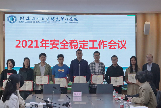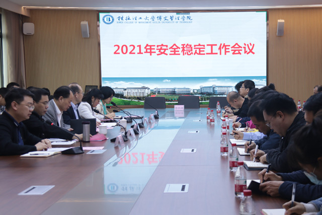 4月25日上午,桂林理工大学博文管理学院在教三楼3324会议室召开“2020年度校园安全工作总结表彰暨2021年校园安全稳定工作部署会”。校领导尹少华、王金叶、金飞、冯正垚、杨鲜丽,各二级学院、职能部门负责人、校卫队代表在桂林校区参加会议。副校长王加青、南宁校区各职能部门负责人在南宁校区同步参加视频会议。会议由党委副书记邓雪梅主持。