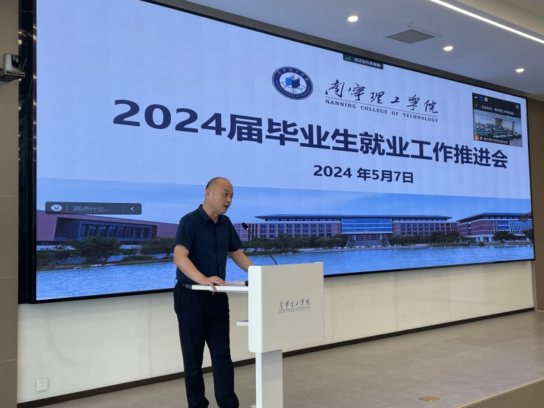 学校党委副书记、校长助理马纪涛在会上发言。他指出,就业是最大的民生工程、民心工程。要切实提高政治站位,强化使命担当,深刻认识做好高校毕业生就业工作的重大意义。为进一步做好2024届毕业生的就业工作,他提出了几点要求:一是针对就业困难的学科专业要重点谋划,优化就业指导服务,进一步加大各类社会资源和岗位信息的针对性推送;二是要把握就业工作尺度,与学生多沟通交流,做好毕业生心理疏导工作,了解学生群体就业需求,让就业帮扶更精准、更有温度;三是积极响应教育部、区教育厅相关文件要求,做好“国聘行动””百城万企-民企高校携手促就业”“全国中小企业网上百日招聘”等全国性统一招聘行动的传达落实;四是持续开展书记、校长“访企拓岗促”就业专项行动,深化校企合作,提升访企拓岗精准度;五是二级院系要结合学科专业特色、毕业生求职就业意愿等情况,积极开展小而精、专而优的中小型专场招聘活动;六是就业部门要分类研判,精准摸排,提供个性化的就业指导和职业生涯规划服务,针对有就业意愿的就业困难学生,给予积极的就业指导和精准帮扶,确保有就业意愿的困难群体毕业生实现百分之百就业;七是要积极引导毕业生留桂就业,以留桂就业计划为契机,优化区内就业内循环。