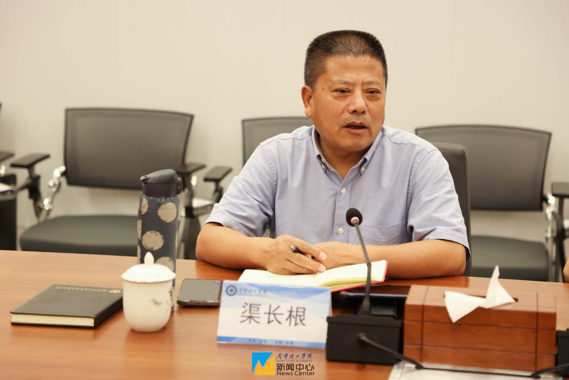 随后,渠长根前往图书馆619会议室参加思政课教师座谈会。学校党委书记、督导专员金飞,马克思主义学院院长黄德林教授和马克思主义学院教师代表参会。黄德林主持会议,他热烈欢迎渠长根来校指导思政课程建设,并介绍了渠长根的基本情况。