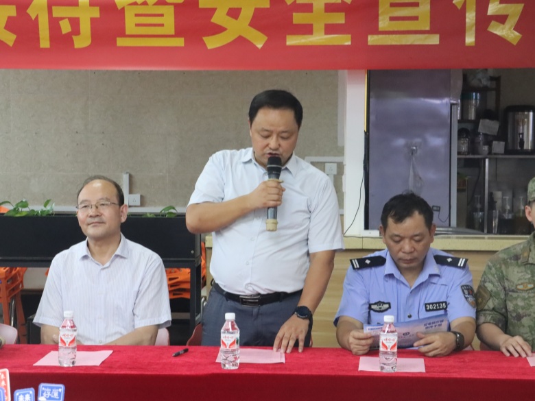 启动仪式上,学校校长助理郑方兵致辞,他首先代表学校对雁山区人武部、雁山消防救援大队、雁山镇派出所的大力支持表示衷心的感谢!而后,他强调,今年6月是第23个全国“安全生产月”,主题是“人人讲安全、个个会应急——畅通生命通道”,他希望全体师生员工要树立起“安全第一”的意识,在平时学习生活中学会“应急”,时刻确保“生命通道”的畅通,为学校安全稳定做出自己的贡献。同时,希望广大师生积极参与防骗防诈、节能减排、公寓消防以及征兵宣传咨询活动。