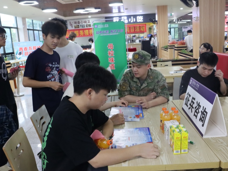 为积极做好2024年度秋季征兵工作,营造浓厚征兵宣传氛围,鼓励大学生积极应征入伍,献身国防事业,特别邀请辖区人武部干事开展征兵政策宣传咨询。活动中,征兵工作人员向现场咨询的同学们详细讲解了2024年秋季应征报名时间、应征入伍基本条件、兵员征集对象、应征入伍流程,重点介绍了大学毕业生参军优惠政策以及义务兵役期间的待遇,消除了同学们的后顾之忧,让大家对征兵政策有了更深入的了解,有效提高了入伍参军、报效祖国的积极性。