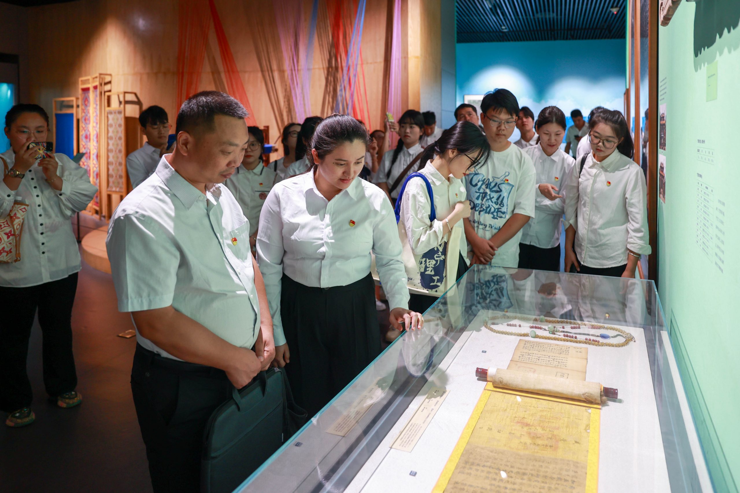 展览分为“共辟辽阔疆域”“共书悠久历史”“共创灿烂文化”“共育伟大民族精神”四大部分,生动展示了广西各民族为中华民族、中华民族共同体、中华文明的形成和发展作出的重要贡献。在工作人员的讲解下,大家通过聆听解说、鉴赏文物、体验多媒体互动等多种方式,深入了解了广西各民族与其他地区各民族交往交流交融的生动故事,展现了在党中央的正确领导和党的民族政策的光辉照耀下,广西民族团结、社会稳定、边疆安宁的局面得到不断巩固发展的良好态势。