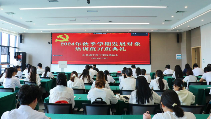 为深入学习贯彻党的二十大精神,切实提升发展对象的政治素质和理论修养,10月16日我校在南宁校区举办2024年秋季党员发展对象培训班开班仪式,桂林校区同步线上参加。学校党委副书记马纪涛,党委委员、校长助理、机关党支总书记郑方兵以及各二级学院党总支部书记出席开班仪式。本次会议由南宁校区发展对象培训班班主任李梅主持。