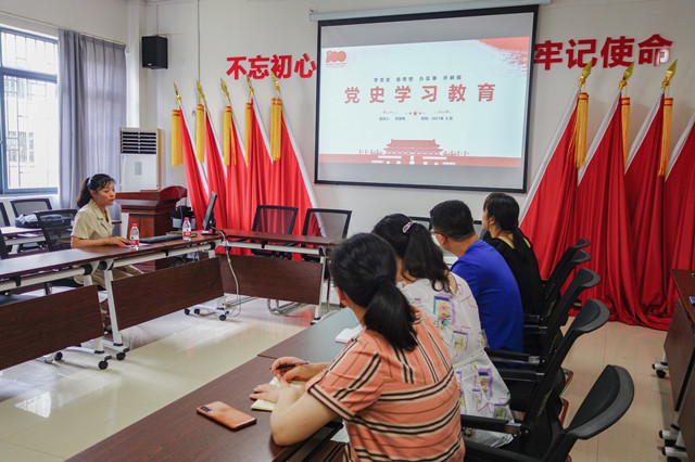 本次党课中,邓雪梅从习近平总书记关于党的历史的重要论述、充分认识开展党史学习教育的重大意义、如何接受好这场党史学习教育三个方面引导全体党员牢固树立正确党史观,自觉做到学史明理、学史增信、学史崇德、学史力行,结合实际学党史、悟思想、办实事、开新局。同时,她还给大家提出三点建议,一要提高认识,把党史学习作为支部党员同志政治生活的一件大事,发挥教师队伍“主力军”、课程建设“主阵地”、课堂教学“主渠道”作用;二要抓住重点,深度细品党史学习内容,立足岗位学党史、强服务、开新局、比奉献;三要善于反思,从百年党史中汲取继续前进的智慧和力量,争做“四有”好老师。