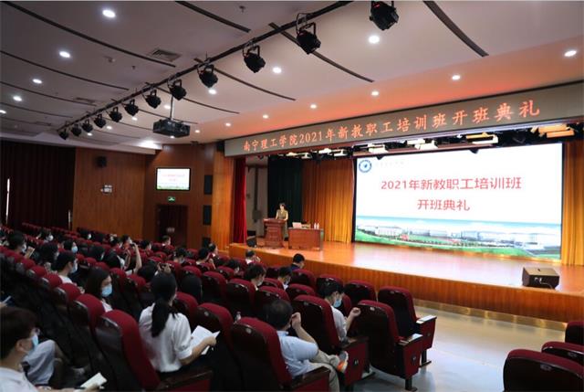 8月29日,学校在报告厅组织了2021年度南宁理工学院桂林校区新教职工培训班开班典礼。桂林校区89名新进教职工参加了培训,校领导尹少华、王金叶、冯正垚、杨鲜丽、郑方兵和职能部门负责人参加了典礼。开班典礼由副校长杨鲜丽主持。
