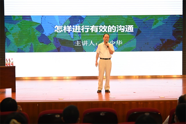 尹少华董事长对新教职工表示诚挚的欢迎。并围绕怎样进行有效的沟通做了专题报告,报告从“沟通的类型”、“沟通的基本原则及技巧”、“沟通的步骤”三个方面,分析了如何进行有效沟通。尹董事长在报告中,结合自己工作经历,结合发生在学校的具体案例,既注重从理论上进行引导,更注重从操作层面的指导,参训的教职工纷纷表示报告接地气、实用,针对性强。尹董事长希望新教职工在培训中学习、在学习中思考、在思考中前行,用良好的沟通能力实现更大的作为。