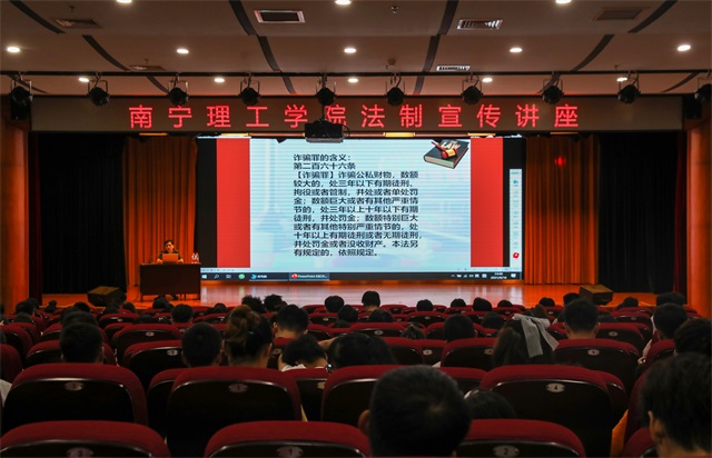 活动现场,雁山区人民法院肖法官结合高校易发的典型案例分析、常见形式和诈骗种类以及校园贷的特点、常见手法及危害,为同学们讲解了不法分子常用的诈骗手法和作案特点,提醒大家要理性消费。