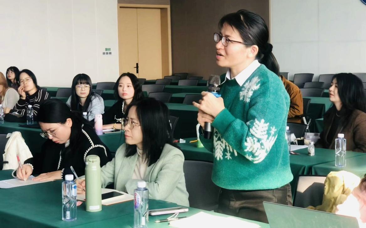 随后,南宁师范大学石亿教授分享了教学竞赛的重要性以及个人在参加青年教师教学技能大赛过程中的经验。她强调教学竞赛对于青年教师成长的重要性,不仅是提升教学技能的机会,也是职称晋升的途径之一,她向在场教师们分享自己参加青年教师教学技能大赛的经历,包括失败与成功,并详细介绍了比赛准备的关键点,如理解比赛要求、选择合适的课程、团队合作以及教学内容的选择等。随后,石亿教授以一篇参加青教赛的《诗歌之意象美》优秀课件为例,深入讲解了教学方法和呈现技巧,让与会教师受益匪浅。