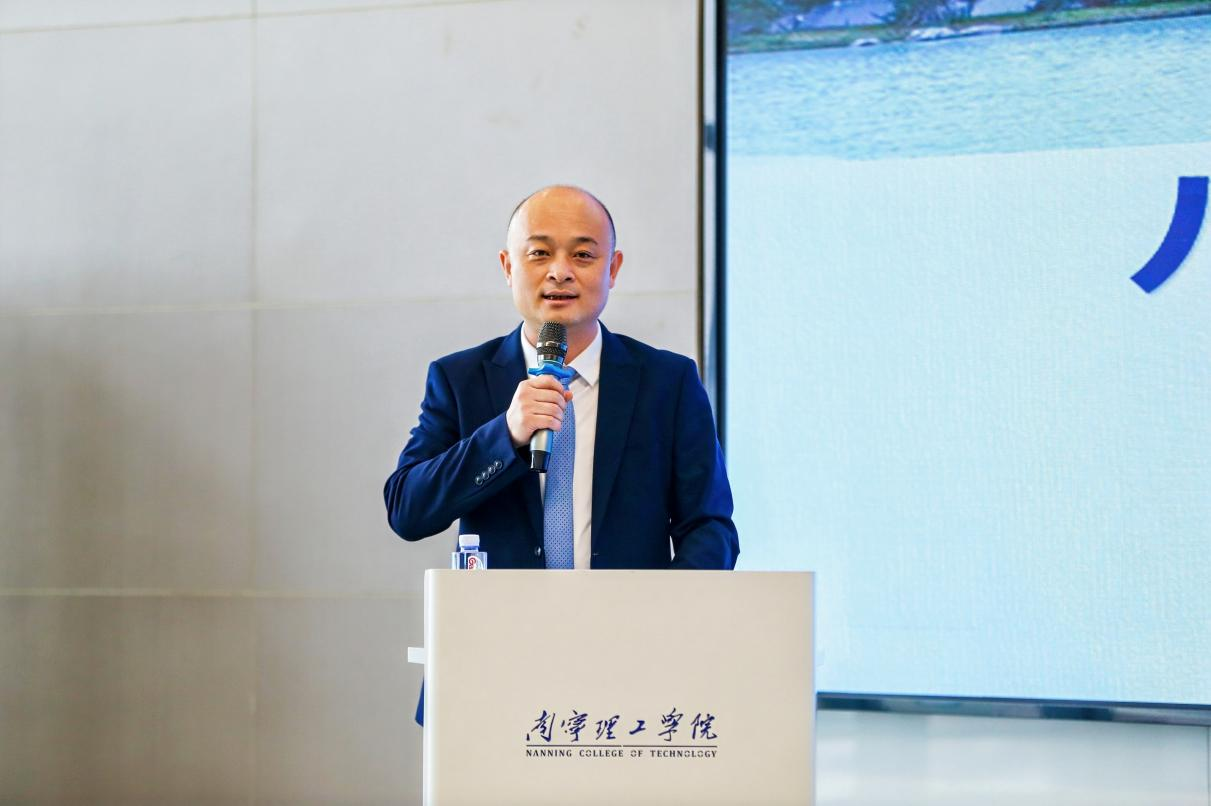 主题分享环节,学校党委副书记、校长助理马纪涛详细介绍了南宁理工学院的办学特色与发展蓝图。他提到南理作为一所扎根八桂大地、立足北部湾、面向东盟的应用型本科高校,以“高端化、全球化、个性化”为发展战略,通过产教融合、国际科研合作、个性化培养等举措,持续输出具有全球视野的高素质应用型人才。同时现场通过视频展播与数据解读,生动呈现了学校在学科建设、国际合作及社会服务领域的创新成果。