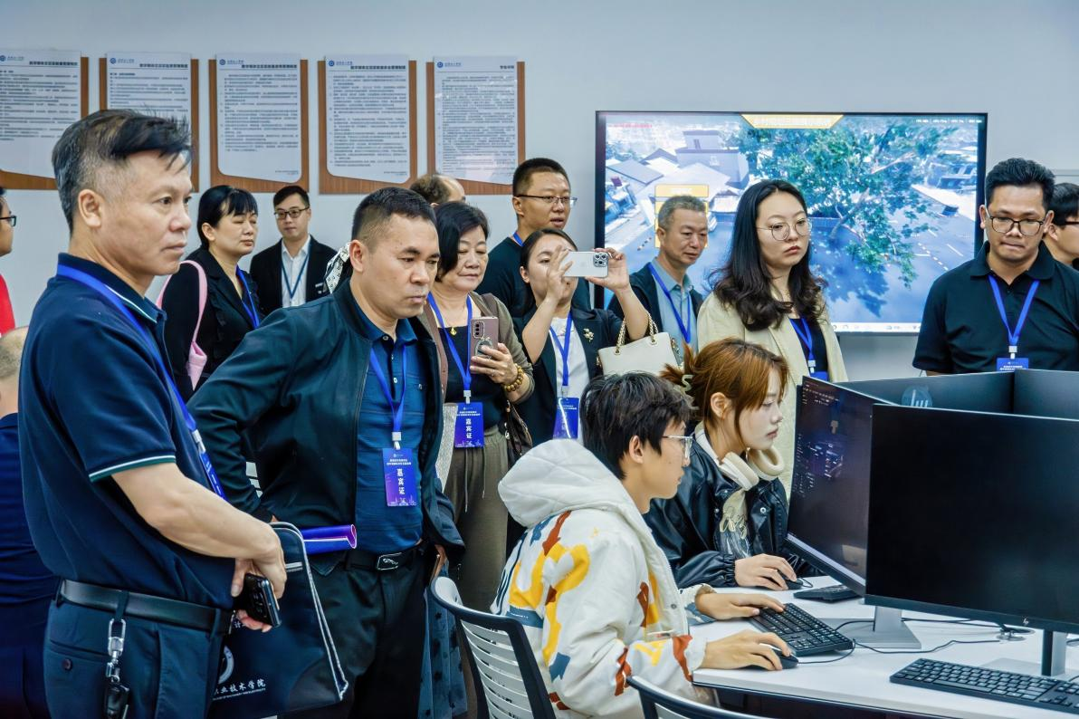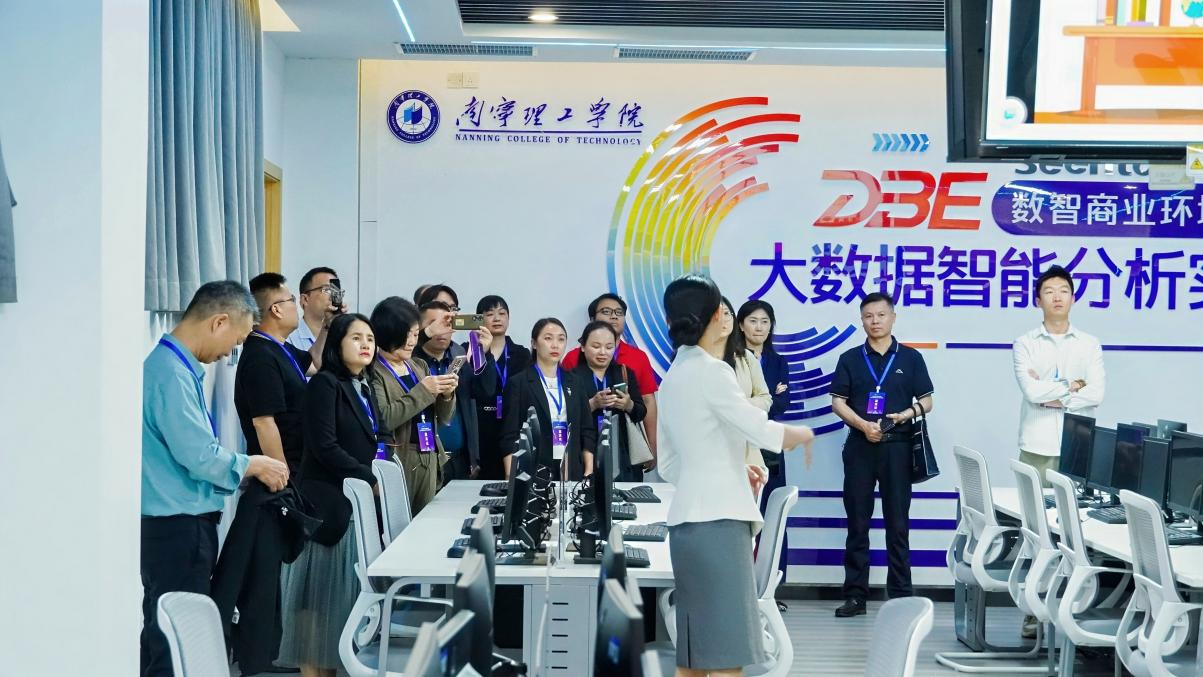 会前校园参观:沉浸式体验南理育人生态。为直观呈现学校办学特色与育人成果,会议开幕前,与会嘉宾在南宁理工学院校领导的陪同下,沿数智化、国际化参访路线展开深度考察。首站来到数智商业虚拟中心,嘉宾们亲身体验基于虚拟仿真技术的全球商业沙盘推演,对学校“商科+技术“的跨界培养模式频频点赞。