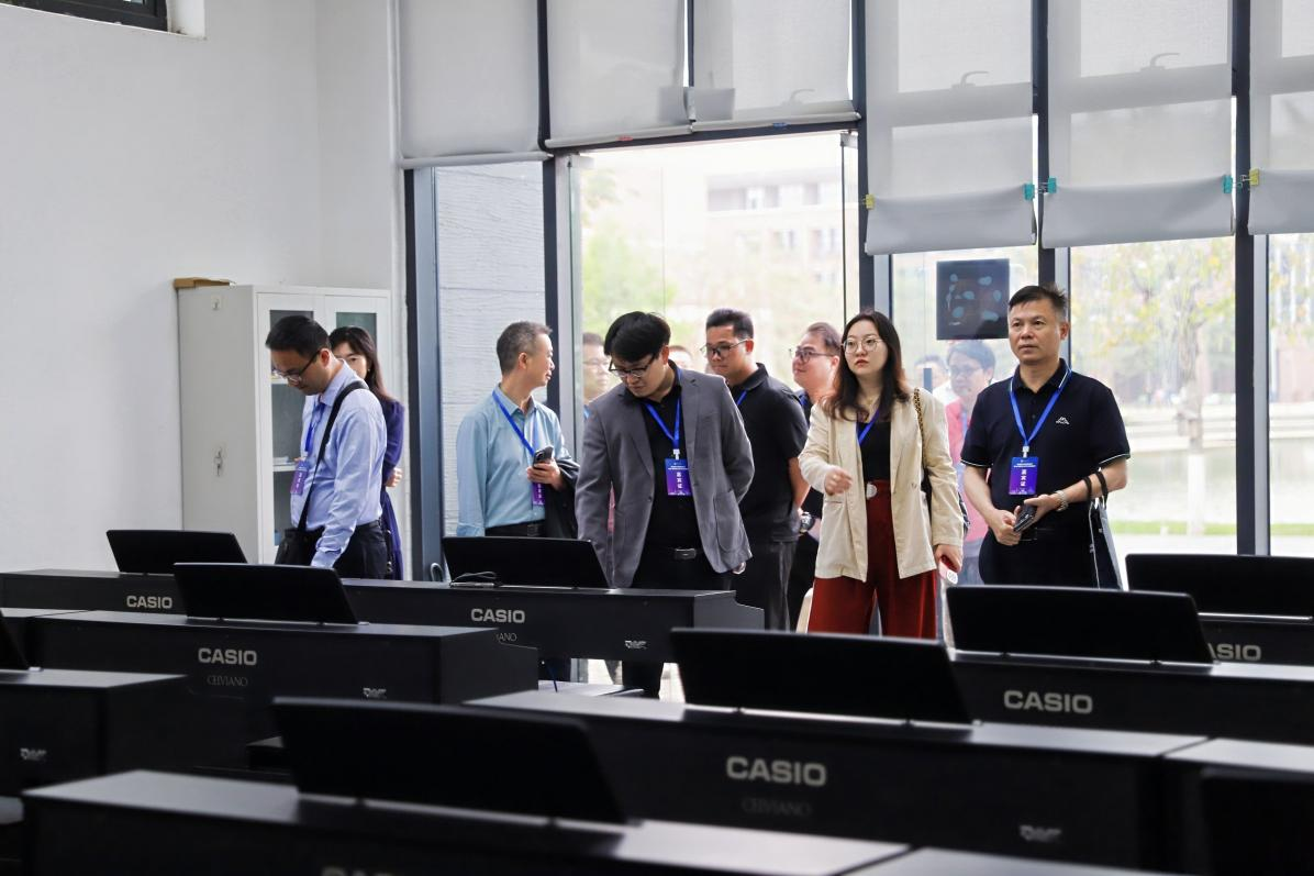 移步至艺术岛电钢琴实训室,琴声悠扬,学生正在专注演奏《蓝色多瑙河》等经典曲目,指尖流淌的旋律吸引嘉宾驻足欣赏艺术教育的感染力在此刻生动绽放。