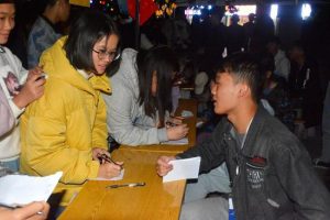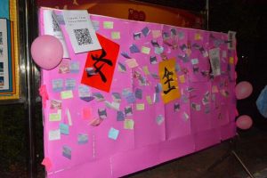 本次活动分为两大环节。上午11点11分,第一环节心愿墙活动准时拉开帷幕。本次活动设有男生心墙区和女生心墙区,参与活动的同学纷纷在“心愿卡纸”上写下自己的愿望,并张贴在各区设置的许愿墙上。五彩斑斓的贴纸带着诚挚的祝福,让校园里充盈着欢乐的气氛。傍晚时分,当星星灯围绕活动区域时,第二环节趣味运动也正式展开。“瞎子背瘸子”、“猜猜我是谁”、“猜成语”、“双人背气球跑”等游戏吸引了大批学生,大家争先恐后地走进游戏场地加入其中。轻松欢快地游戏氛围和同学们清脆爽朗的笑声,将现场气氛层层推至高潮。