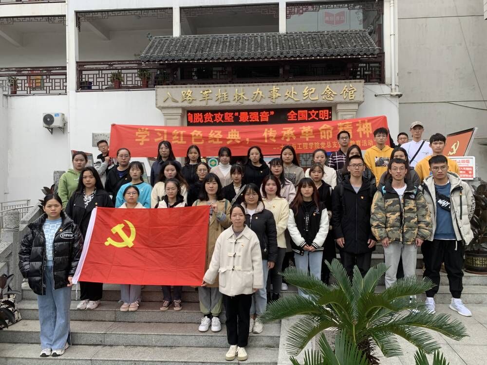 2021年11月12日,南宁理工学院土木与工程学院学生第一党支部赴八路军桂林办事处纪念馆开展“学习红色经典,传承革命精神”主题党日活动,追忆革命历程,感怀峥嵘岁月,传承红色基因,弘扬爱国精神。