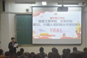 为进一步做好党员发展工作,提高入党积极分子的思想政治素养和政治理论水平,11月15日晚上,信息工程学院党总支在4101教室举行第32、33期入党积极分子培训班开班典礼。我院分团委书记及全体辅导员老师出席了本次活动,第32、33期全体入党积极分子参加活动。