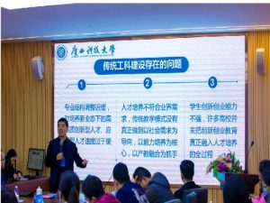 深圳市艾特家科技集团副总经理刘晓涛、广西旅游数据中心主任莫明建、广西科技大学启迪数字学院副院长王萌分别作了《大数据技术体系解析与探讨》、《大数据平台建设与运行管理》、《新工科建设的内涵与实践》主题的分享报告。随后我校信工学院院长许永敏主持了《大数据技术“双一流”建设研讨会》。最后,深圳市世通信息技术有限公司人才交付经理邹辉为信工学院的450多名学生作了《大数据应用场景解析》主题的讲座。