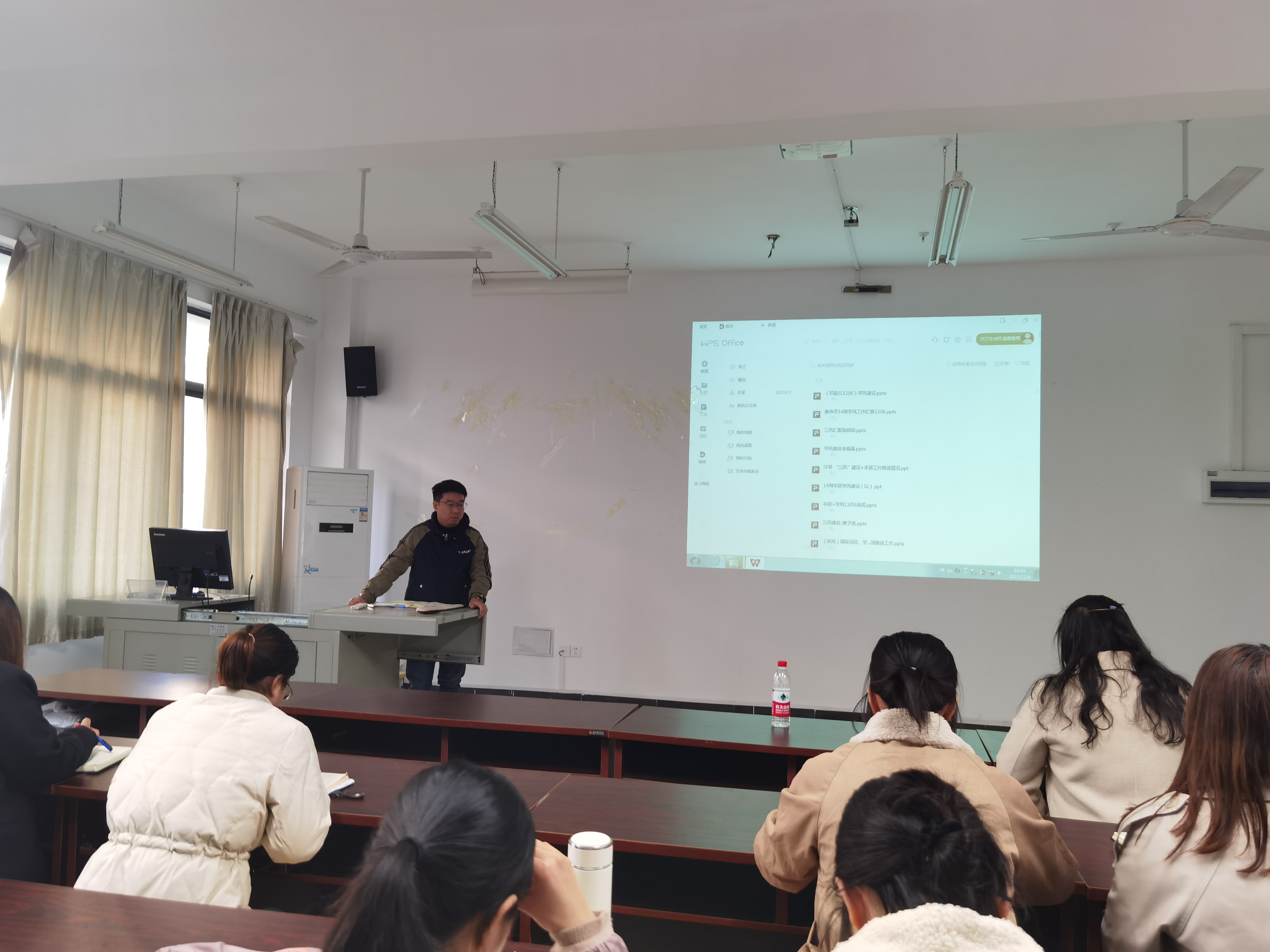 各辅导员总结分享上周学风建设工作内容,以善楠老师创立了自己独特的学风平台“楠哥之夜”–分享就业信息,拉近师生关系。王丽雪老师的“微宣讲”“微故事”,李晶晶老师的“十人兴趣小组”,叶琴老师的“榜样带头作用”等,都给各辅导员在学风建设上提供了有效的参考方案。
