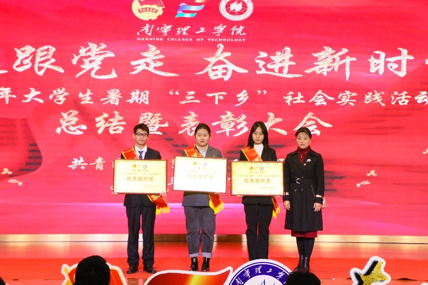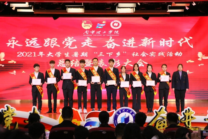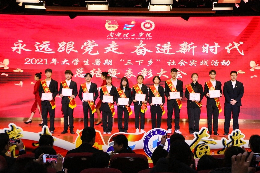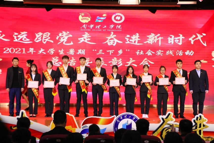 表彰大会在庄严的团歌声中拉开帷幕。会上,由校团委书记朱新辉老师宣读了《关于南宁理工学院2021年大学生暑期三下乡社会实践活动表彰决定》。经研究决定授予土木与工程学院分团委等3个组织为“优秀组织”称号;“文理知行”、“觅寻者”等10支团队为“优秀团队”称号;秦磊等10名老师为“优秀指导老师”称号;李敏等41名同学为“宣传先进个人”称号;张成等57名同学为“优秀队员”称号;丁美琪等535名同学为“社会实践积极分子”称号。