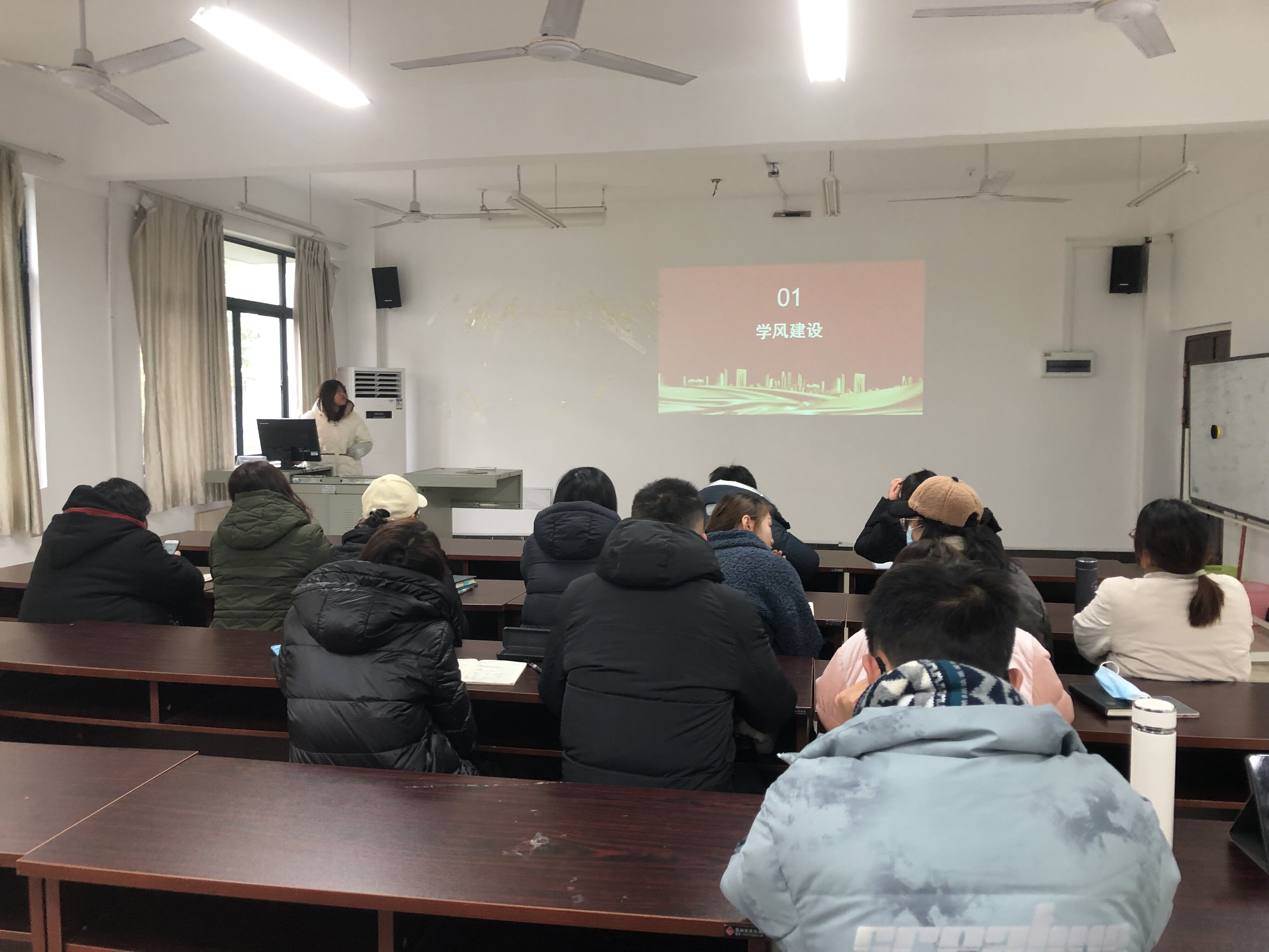 会议围绕如何在期末阶段提升学风质量和近期工作安排展开。各辅导员现场分享近期学风建设特色方案,并对后续跟进情况进行说明。党总支书记秦磊还就近期工作进行了部署。首先对各辅导员的学风建设方案表示了肯定,其次是布置2022届就业工作以及征兵工作,以及布置了假期安全工作。最后是针对2022年的其他工作提前做了计划。