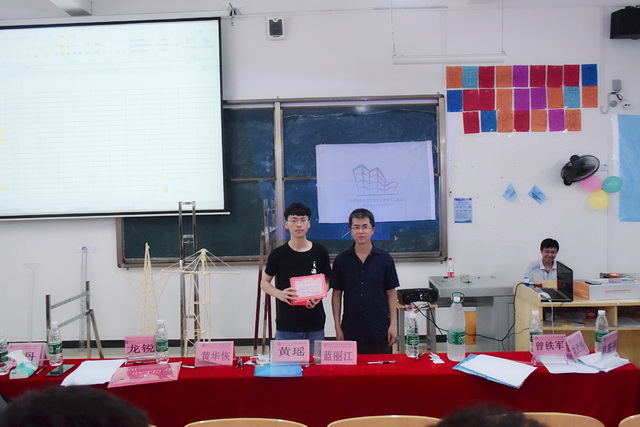 随即到了各老师评分统计的环节,经过近半个小时的分析与讨论,比赛结果得出。老师们对获奖小组进行颁奖并合照。随即老师和老师对本次比赛的过程进行了点评。最后比赛圆满结束,本次比赛提高了同学们的实践动手能力和创新能力,充分认识到综合知识能力的重要性,丰富了同学们的认识,同时也选拔出四组优秀参赛队伍代表我校去参加广西区结构设计竞赛,预祝他们在区赛中取得好成绩。
