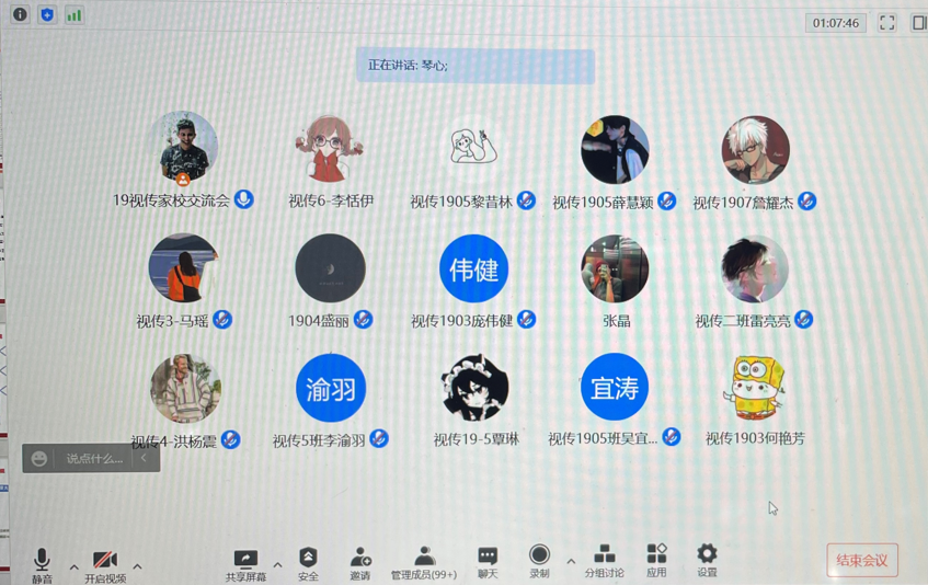 艺术与传媒学院全体师生在春季开学初始始终严格落实疫情防控政策,此次“云”班会的开展为师生联系搭建桥梁,提升了我院学子自身安全防范意识和能力,同时进一步提高和巩固了我院学风建设。