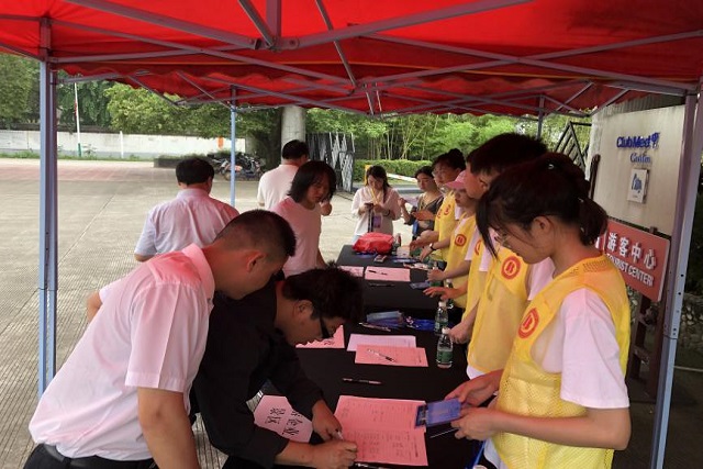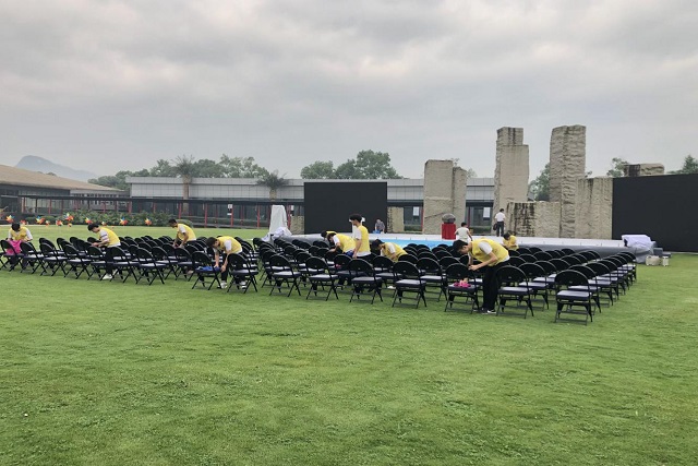 5月18日下午,志愿者们抵达愚自乐园地中海度假村进行活动会场的提前布置,在听取会场工作人员的安排后,志愿者们明确分工,配合协作,在较短的时间内准备好会场布置所需的物品并将其放置在指定位置。5月19日上午,启动仪式正式开始,为了确保活动的顺利开展,志愿者们主要负责嘉宾签到、迎宾引导以及现场维护等三项工作。活动中,志愿者们始终坚守岗位,发扬一不怕苦,二不怕累的服务精神,为活动的顺利开展贡献出了自己的一份力量。