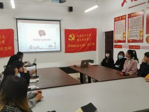 2022年3月21日晚上,商学院学生第八党支部在1410教室组织开展了贯彻落实全国两会精神主题学习活动。本次会议由支部书记贾乐园同志主持,支部全体党员和预备党员参加此次会议,校外党员通过腾讯会议参加。