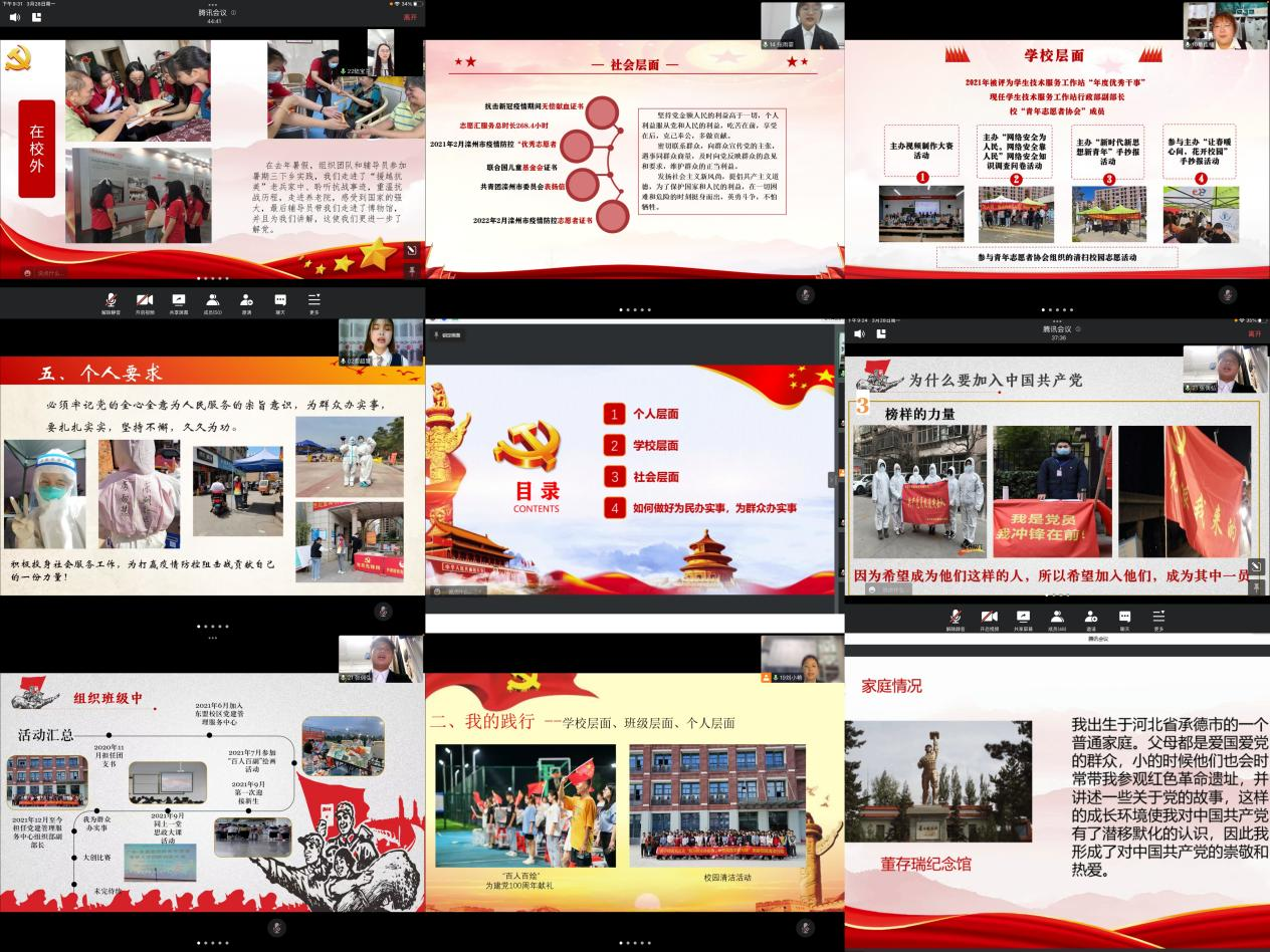 为规范发展党员工作,确保党员发展质量,我院东盟校区学生党支部于3月28至29日晚,通过腾讯会议的方式召开2022年上半年党员发展对象答辩会,学院东盟校区全体辅导员、学生党员及部分入党积极分子参加,答辩会由学生党支部书记方奕涛主持。