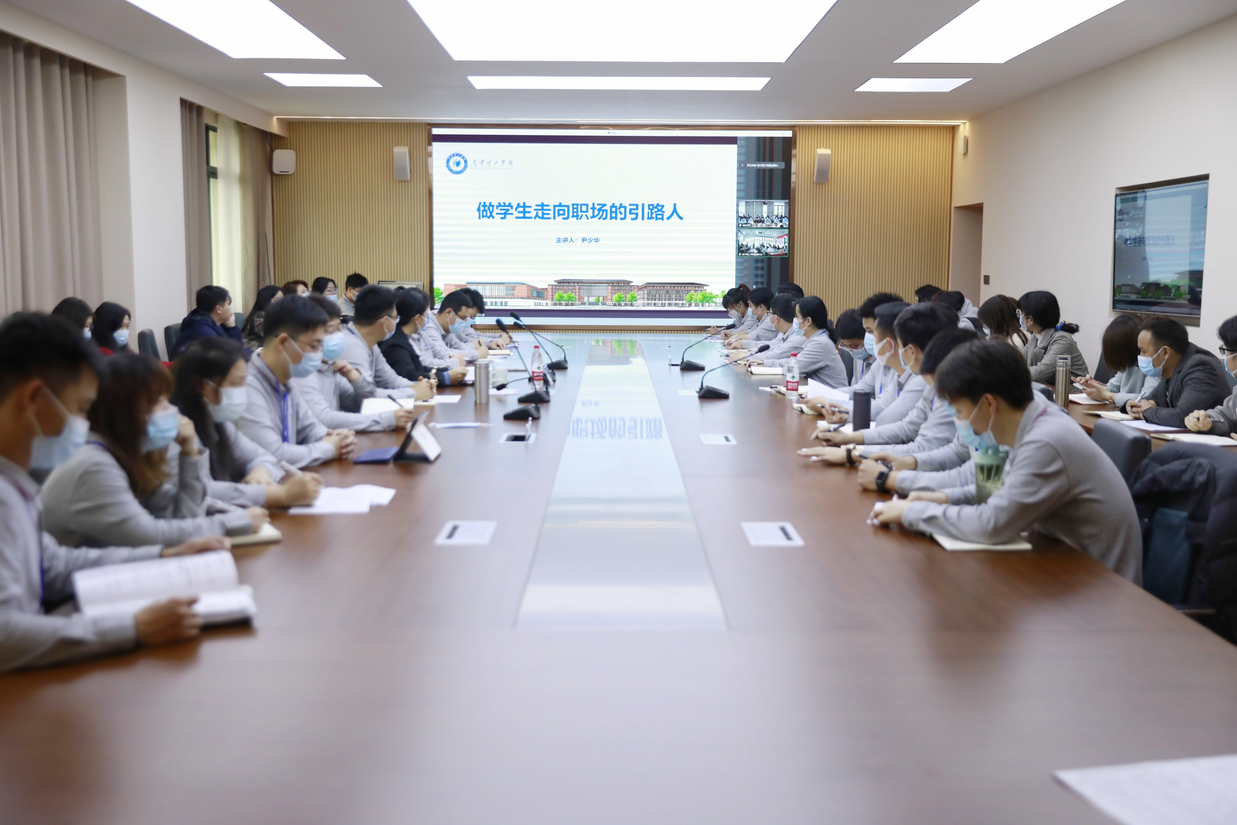 尹少华董事长以回顾自己和指导学生走向职场时的场景导入,分别从国家安全稳定、学校发展、家庭兴衰和个人未来等四个层面来阐述就业工作的重要性。他指出,要引导学生做好就业准备,辅导员要做好引路人,首先要转变学生的就业观念,根据学生的意愿、特质引导学生做好职业生涯规划。他强调,学工队伍是引导学生就业的第一梯队,辅导员要不断提升就业指导水平,紧跟社会发展要求,用知识武装自身,为学生做深做实就业教育工作。