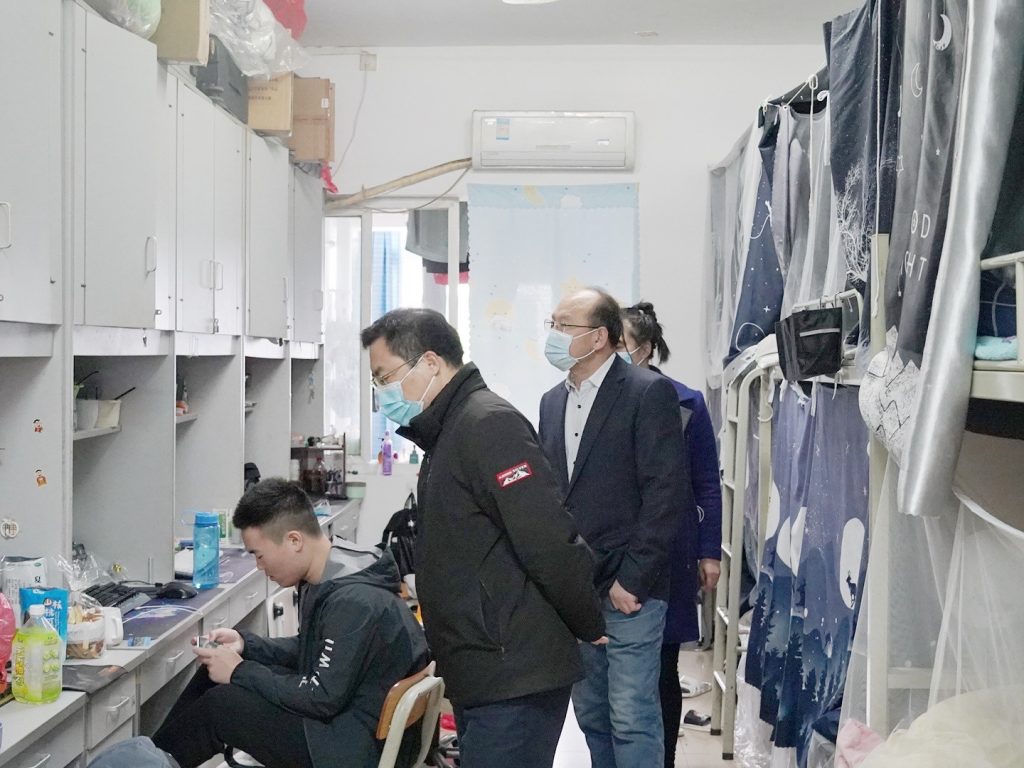 此次检查由学校领导王金叶、金飞、邓雪梅、杨鲜丽、郑方兵、到达现场视察,本次检查主要针对宿舍用电安全隐患卫生情况及学生在宿舍期间的疫情防控措施情况等问题进行全面检查。
