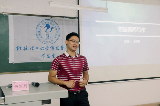 培训会上,老师以“新闻定义、特点及体裁”“新闻语言、框架及写作方法”“新闻选题策划”“校园新闻基本内容”等方面内容进行讲解。朱老师以校园日常各类新闻为例,并结合自身撰写新闻稿件的经验和体会,向同学们做了详细介绍和分析。此外,朱老师还强调:想要写好新闻,只是通过一两次的培训是远远不够的,重要的是要在日常学习生活中“多看,多读,多写,多观察,多思考,多行动”。