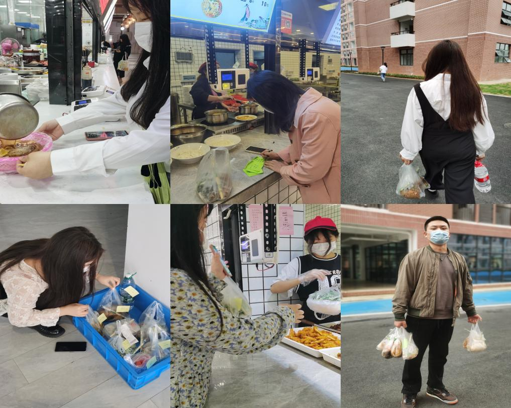 志愿者们辛勤往返于食堂和宿舍之间,遵守疫情防控要求,规范佩戴口罩,严格做好防护措施,全程秉持着“无接触”的原则,让留观隔离的同学们能够按时吃上热腾腾的饭菜。