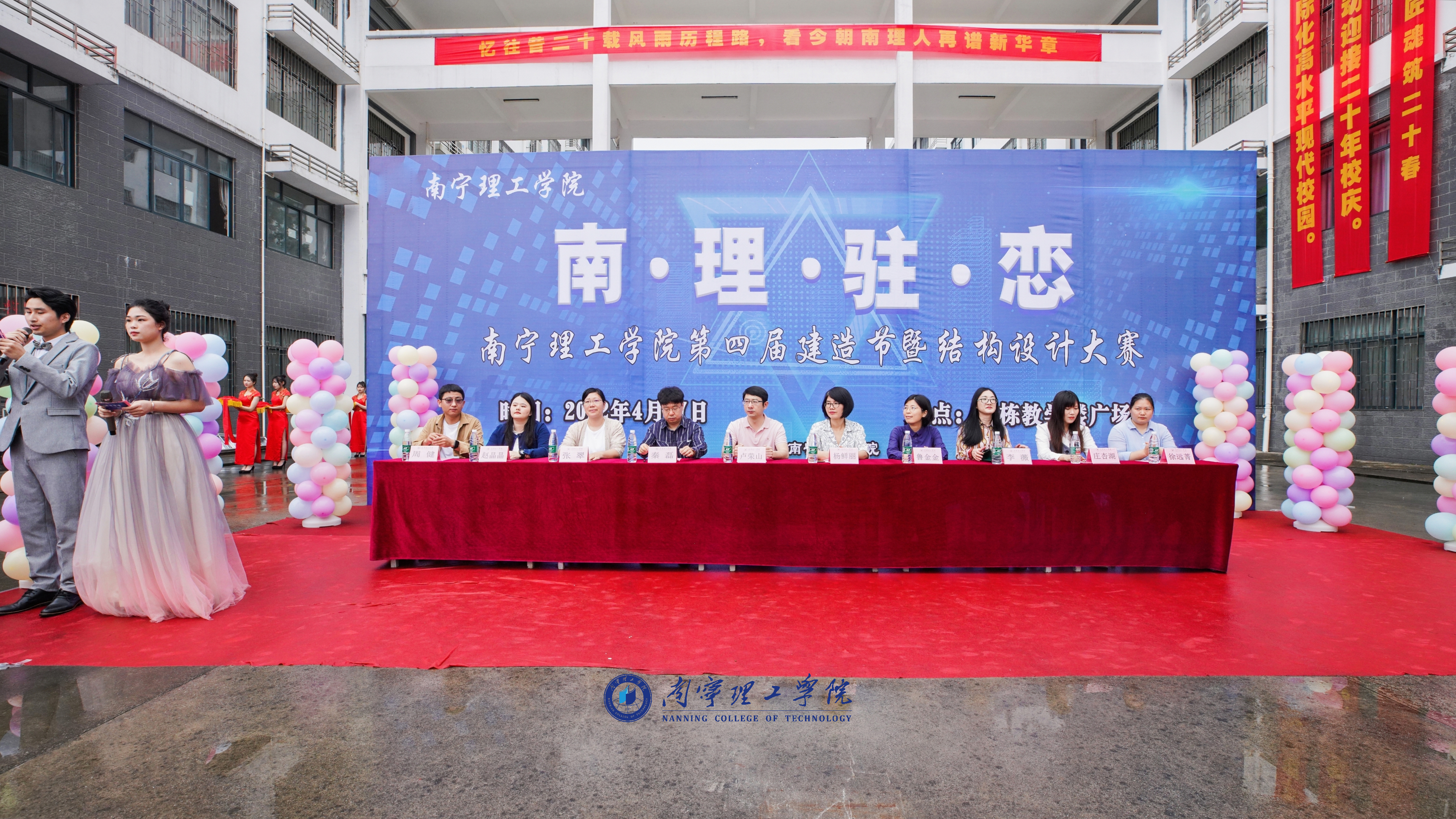 为迎接南宁理工学院20周年校庆,4月27日,由我校主办土木与工程学院承办的南宁理工学院第四届建造节暨结构设计大赛,于二栋广场与数字建造中心举办。莅临本次活动开幕式的嘉宾有副校长杨鲜丽,教研处处长卢荣山,我院院长鲁金金、党总支书记秦磊、信息工程学院党总支书记李薇及副院长张翠,文理学院院长庄杏湖,艺术与传媒学院院长助理赵晶晶,我院分团委书记徐远菁以及艺术与传媒学院分团委书记周健,此外土木工程 教研室教师及各参赛队伍都参加了开幕式。